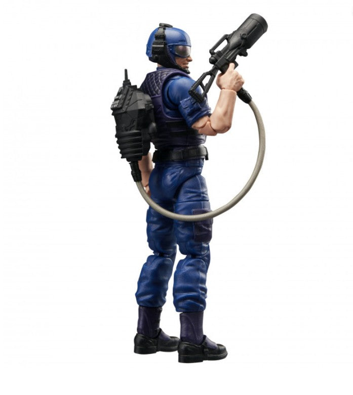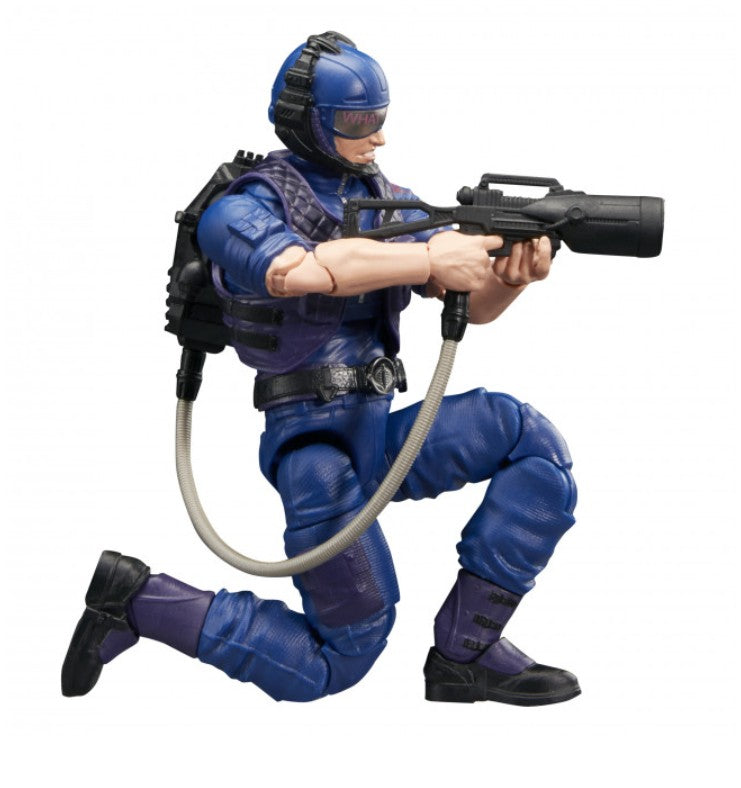 Tele-Viper contains 6 character-inspired accessory pieces including 2 alt heads with visor readouts inspired by the original G.I. Joe cartoon, VS-11 Scanner, Communipac, cable, and figure stand. Tele-Vipers are the RTOs (Radio Telecommunications Operators) of the Cobra ground forces. Their modular radio pack allows for frequency hopping, encryption, and passive jamming and anti-jamming.